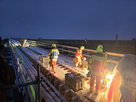 Am Dienstagmittag um 13:23 Uhr wurden die Feuerwehren Borgstedt, Bünsdorf und Büdelsdorf zu einer brennenden Acetylenflasche auf dem Ersatzbauwerk der Rader Hochbrücke alarmiert.